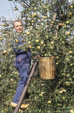 Hoogstamfruitbomen zijn natuur, cultuur en... lekker vruchtensap. Het Binnenveld kent nog steeds heel wat hoogstamboomgaarden. Otto Vloedgraven zorgt voor onderhoud en aanleg in het Binnenveld en de Betuwe en geeft workshops hoogstamfruit snoeien.